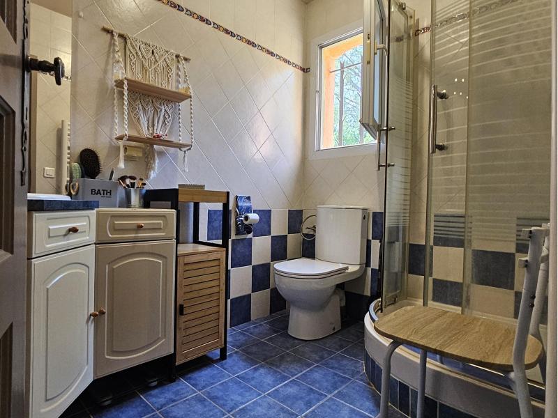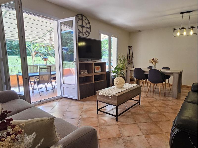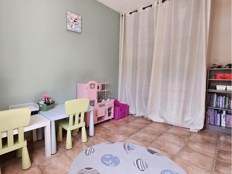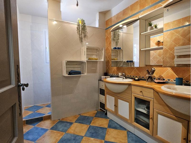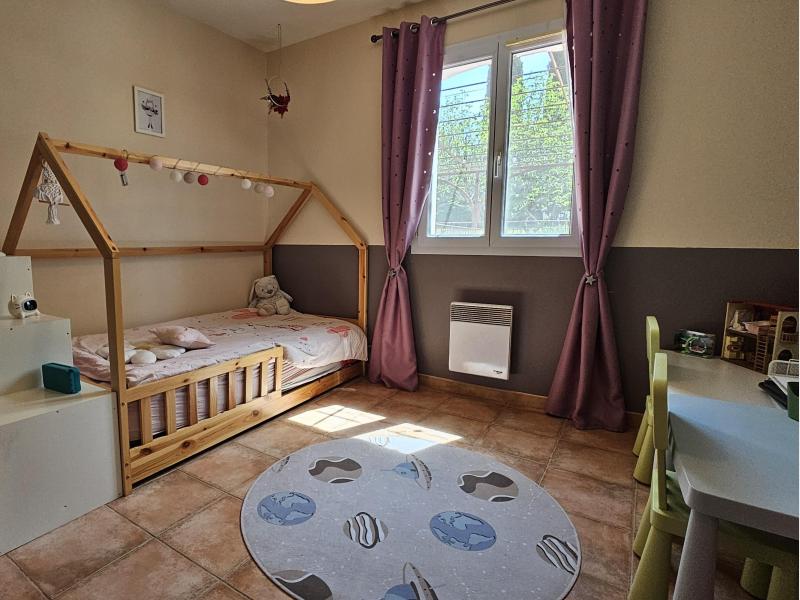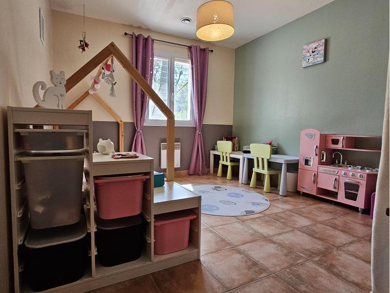 D'une surface d'environ 128m², elle se compose d'une entrée avec un salon-salle à manger équipée d'une belle cheminée, d'une cuisine semi-ouverte, de cinq chambres, de deux salles d'eau et d'un WC séparé.